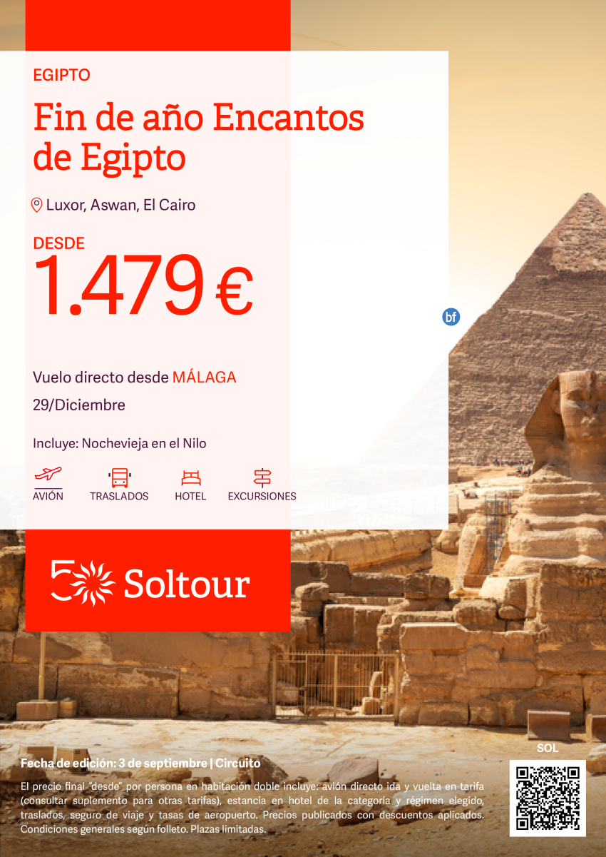 Fin de Año Encantos de Egipto desde 1.479€, salida 29 Diciembre desde Málaga