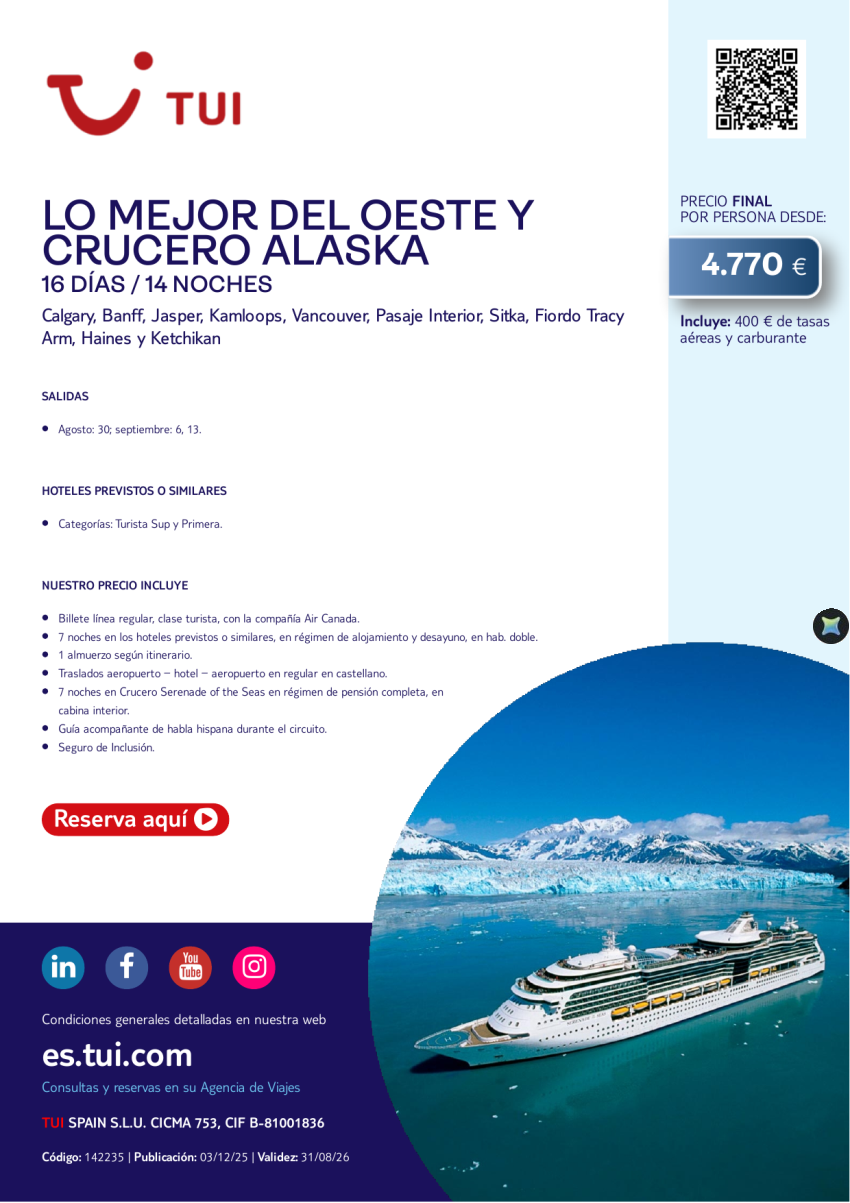 Lo Mejor del Oeste y Crucero Alaska. 16 días / 14 noches. Salidas AGO y SEP desde 4.770 €