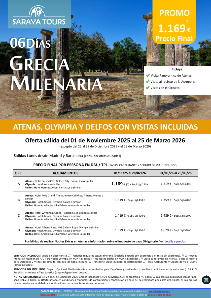 Promo! Grecia Milenaria 6 días: Circuito Atenas, Olympia y Delfos con Visitas Incluidas hasta Oct 26